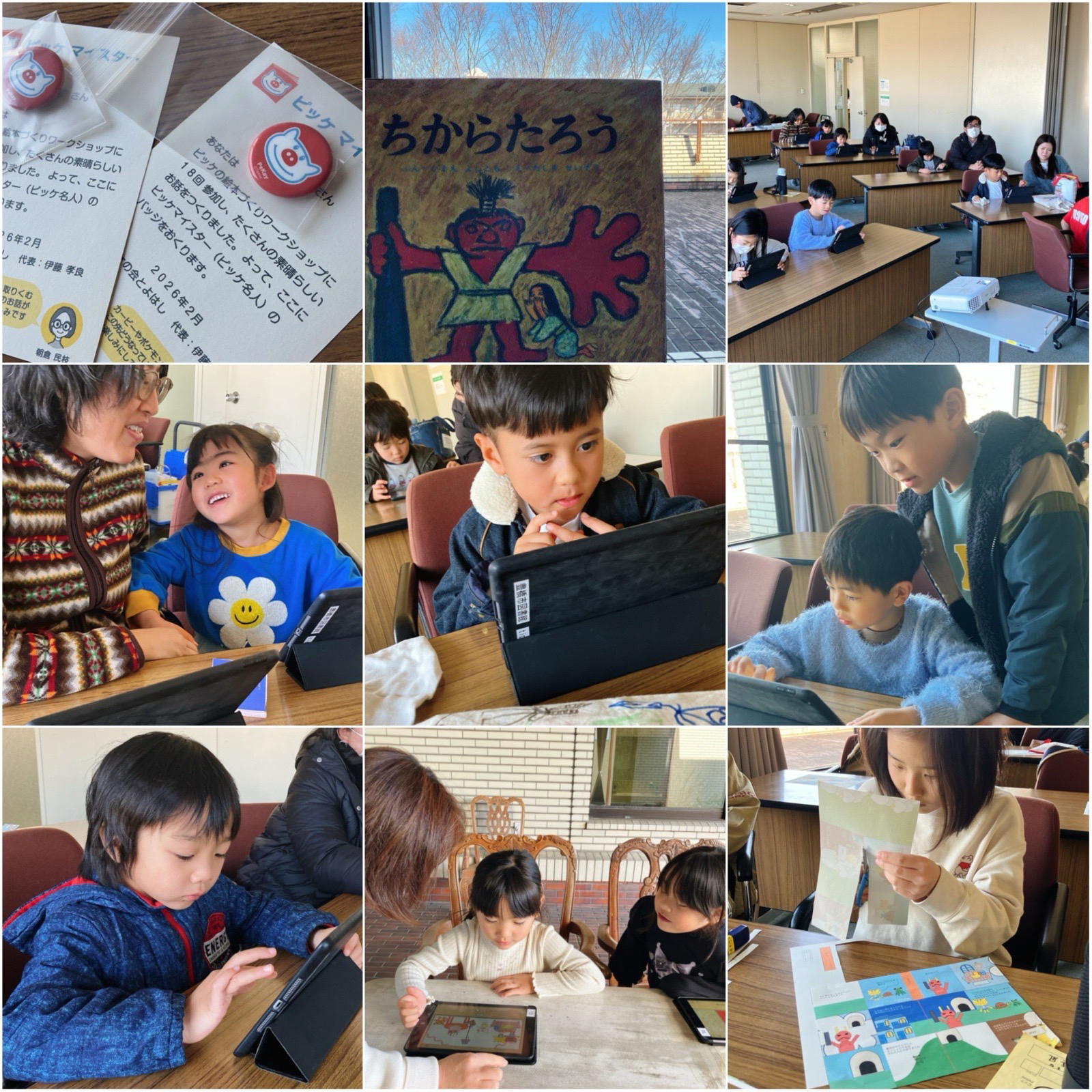 2月14日土曜日は、愛知県豊橋市での月1回のワークショップ(主催:市民ボランティア「ピッケの会とよはし」代表:伊藤孝良さん、協力:中央図書館)。「おはようございます」と子どもたちが飛び込んできます。スタンプカードが満杯になったふたりには、ピッケマイスターのバッジを渡しました。