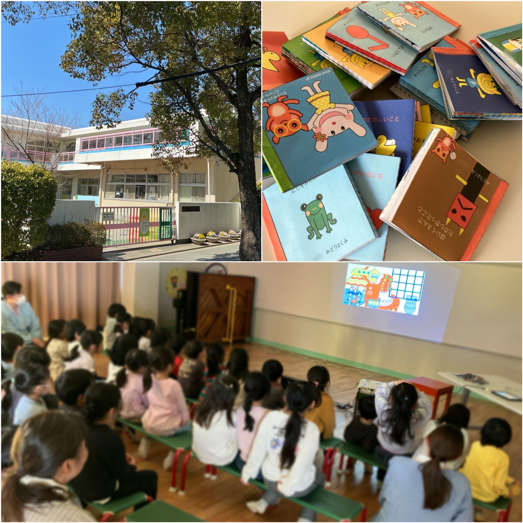 遠足、「表現を楽しむ会」、「運動を楽しむ会」、大好きな絵本『はらぺこあおむし』やLaQ(ラキュー。レゴ的な玩具)の他、今年度は、自分たちでつくって皆で食べたカレーパーティーを題材としたお話も多かったです。大塚公園とか××ちゃんなど固有名詞が登場するのも、オリジナル絵本ならでは。互いの作品に声でも参加しています。いつもの遊戯室がまるで映画館のようで、1作品、1場面ごと大盛り上がりとなりました。