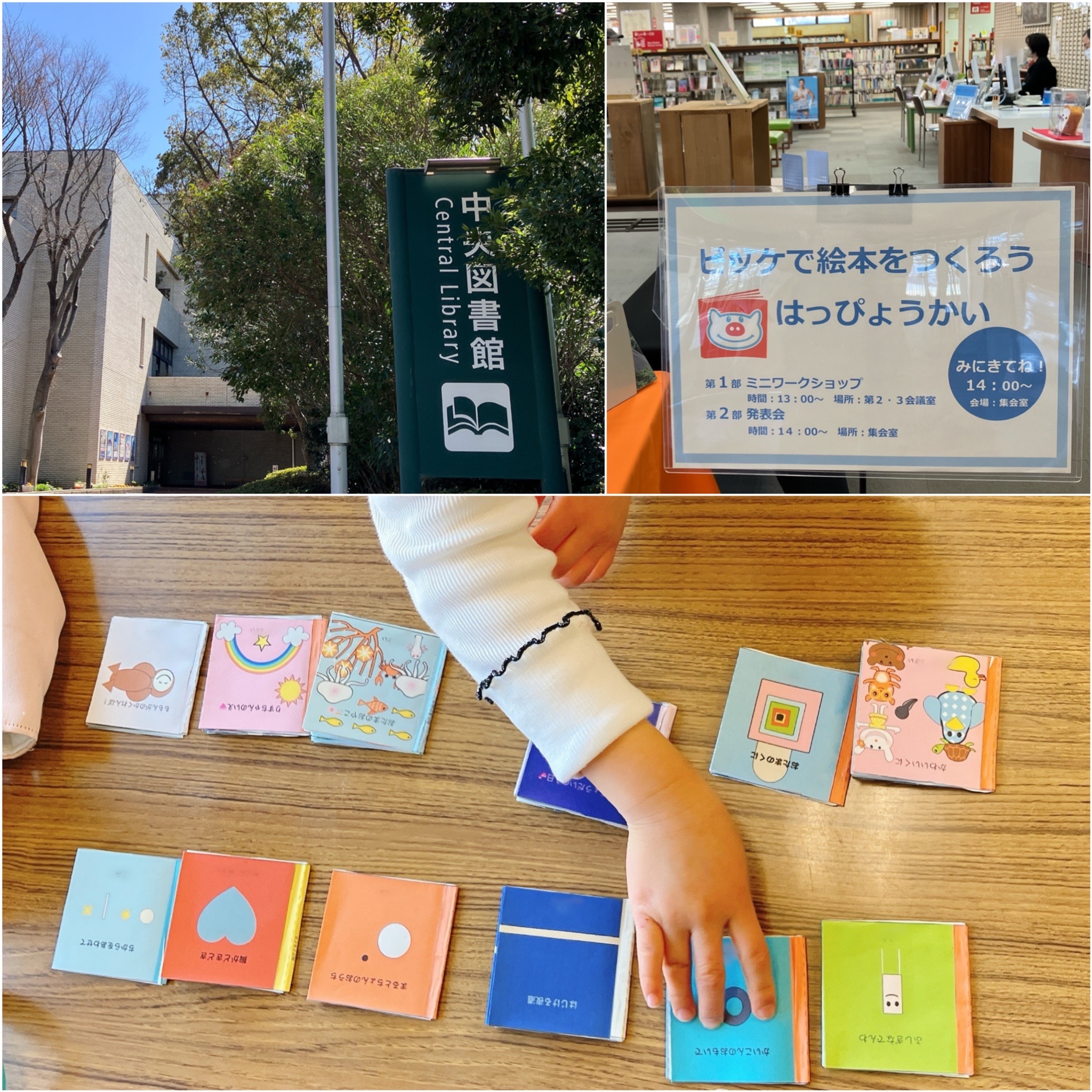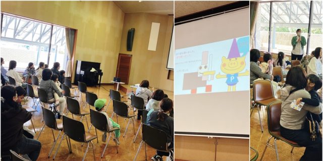 このワークショップの起源は、2018年度に豊橋市が文部科学省「地域の教育資源を活用した教育格差解消プラン」の委託を受け始まった事業「絵本やICTを活用した外国人親子への支援プログラム」に遡ります。豊橋市中央図書館の伊藤孝良館長(当時)を中心に企画・実施されました。あいにく文科省が事業自体を終了したため、2019年度以降は、伊藤元館長を中心とした市民ボランティアの手弁当で続けられています(主催:ピッケの会とよはし、協力:中央図書館)。それを私もお手伝いしています。(今日の発表会のみ主催:図書館、協力:ピッケの会とよはし)2023年度以降、会場が図書館に変更となった午前回については国籍限定を外しています。外国ルーツの子どもたち対象の午後回は会場の手当も難しく、外国人集住団地の自治会、集住地区に在する校区市民館、NPOフロンティアとよはしさん等のご協力も得つつ試行錯誤中です。