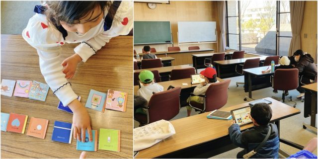 開始前に、別室で発表作品をブラッシュアップする時間をとったところ、早めにやってきた子どもたちが、どの絵本にしようかと親子で相談したり、録音の手直しをしていました。なかには、手直しのはずが新たにつくりたくなり、1作追加でつくった子もありました。