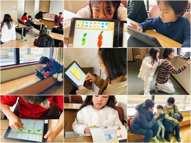 午前は所用があって午後回に来てくれたゴジラシリーズの小3くん。いま取り組んでいる「ゴジラテキスト」では、登場キャラクタをデジタル積木の組み合わせで緻密につくりこんでいます。毎回追加分を貼り合わせていて、すでに大作です。