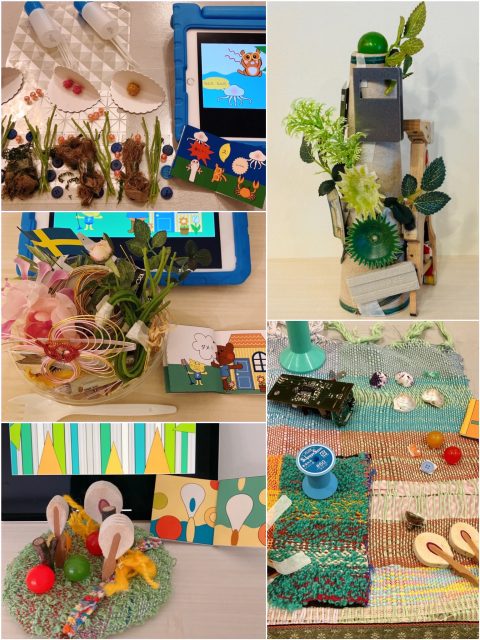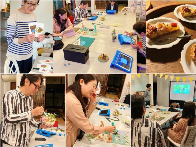 ラボへ戻り、それぞれが選んだ材料で制作。つい脳が先行しがちな日常を離れ、五感を開き、材料に導かれて、手がつくりたいモノをつくるを試みました。ブレイクをはさんで、後半の絵本づくりへ。手を動かしながら生まれた情景や物語を絵と言葉で表し、録音して製本。